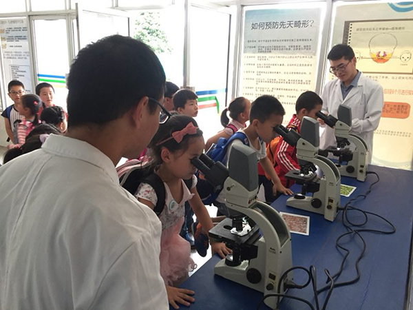 基础医学院承办“探索人体的奥秘”主题系列活动,开放了人体组织和胚胎发生发育的奥秘科普教育平台、人体病原生物科普馆、人体科学馆、人体病理标本库等4个平台,以宣传展板、专人讲解、现场演示等多种方式,向公众传授生命科学知识。同时,举办H7N9禽流感病毒、产学研合作促进实验室的建设与发展、立克次体病的感染与传播、细菌的耐药性、胚胎学知识指导我们的生活: 如何生一个健康的宝宝?、转基因动物研究进展、农药的危害及其去除、急救知识小讲堂等8场主题讲座,促进人们选择健康生活方式,珍爱生命。