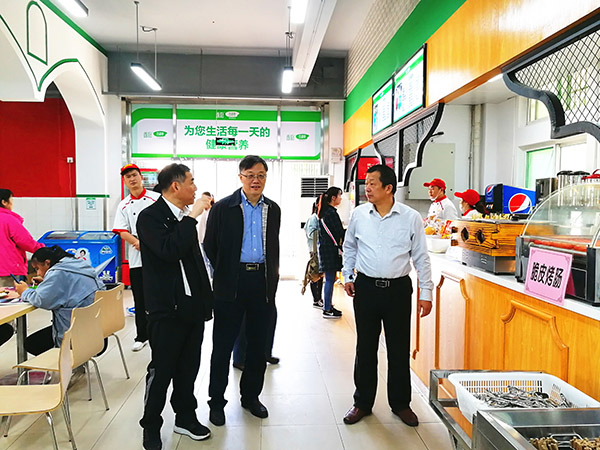 校领导重点查看了学生食堂的质量安全、饭菜价格、食物品种、食堂卫生和就餐秩序,同时与食堂工作人员进行交流,了解到食堂运行的具体情况,并要求食堂经营方进一步增强服务意识、提高服务水平,全力为师生做好就餐服务。