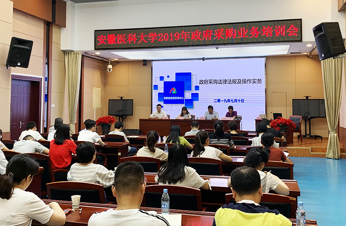 7月10日上午,我校2019年政府采购业务培训会在知行楼一楼会议室召开。会议邀请安徽省政府采购中心负责人徐宁作专题讲座,副校长肖圣龙出席会议并讲话。
