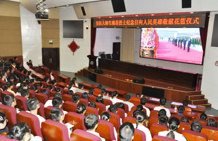 参会学生代表2018级劳动和社会保障专业万栋梁、2016级医事法学专业杜娇锦在观看直播后表示,因为有无数先烈的前赴后继、奋勇献身,才有我们国家今天的繁荣富强。安医大的发展始终与国家的兴衰、民族的命运联系在一起。“爱国爱民,献身人类健康”是我们学校的办学传统。作为安医大的学子,要永葆一份赤枕的爱国之情,时刻秉承“好学力行,造就良医”校训,不忘初心、牢记使命,潜心问学、立身做人,成为人民健康的合格守护人。