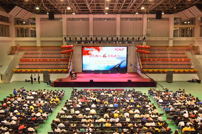 活动组委会成员及2019级新生近1600人参加了启动仪式。据悉,根据新生人数和校区分布,宣讲活动和培训将分别开展三场。(校团委 朱葆珍)