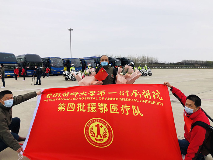 3月27日下午,安徽支援湖北第三批医疗队共300人圆满完成“抗疫”任务,乘坐包机抵达合肥。该批医疗队由我校第一附属医院放疗科副主任医师吴齐兵担任领队。