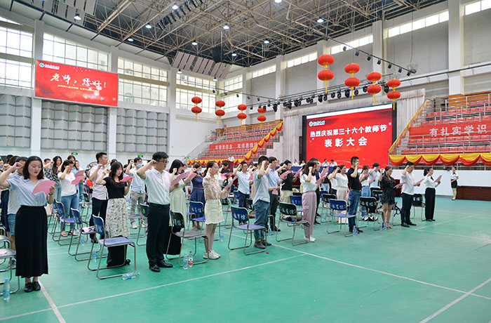 大会还在大屏幕滚动播放了记录我校“十佳教师”投身教育、默默耕耘的先进事迹纪录片,其甘为人梯、仁爱奉献的精神引发现场阵阵热烈掌声。