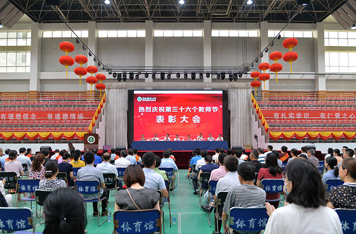 9月9日下午,我校隆重举行庆祝第36个教师节表彰大会。校党委书记顾家山发表讲话,校长曹云霞致辞,向长期以来默默奉献在教育、医疗领域的全校教职员工及离退休老同志致以节日的祝贺和崇高的敬意,向全体受到表彰的同志表示衷心祝贺。校党委副书记刘群英宣读表彰文件,副校长余永强主持会议。校领导肖圣龙、吕雄文、黄新美、李卫平出席大会。