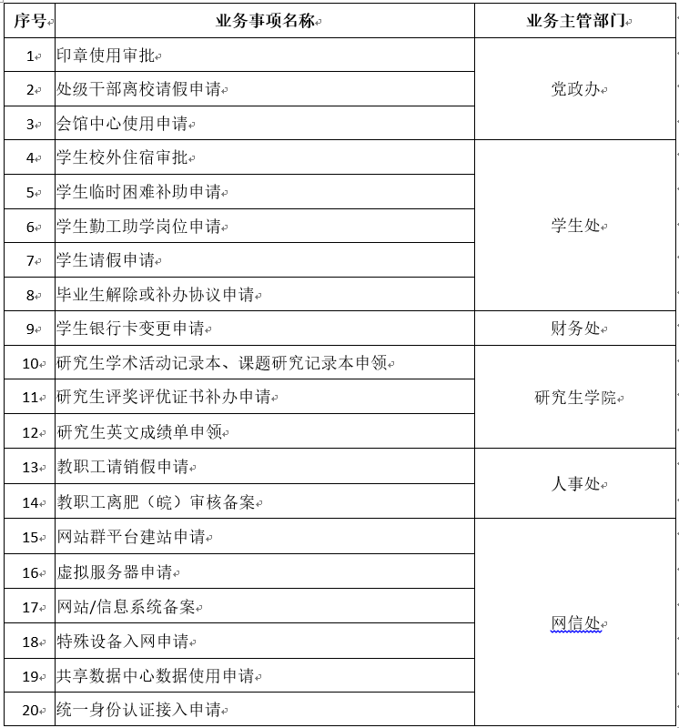 如果在使用办事大厅时遇到任何问题,敬请与网信处联系。联系方式:网络信息部  0551-65161204